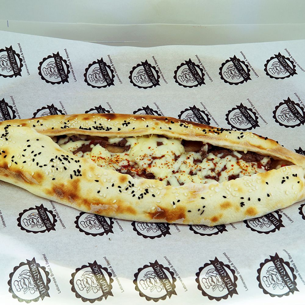 Тесто, говяжий фарш, сырная смесь, помидоры, соленые огурцы